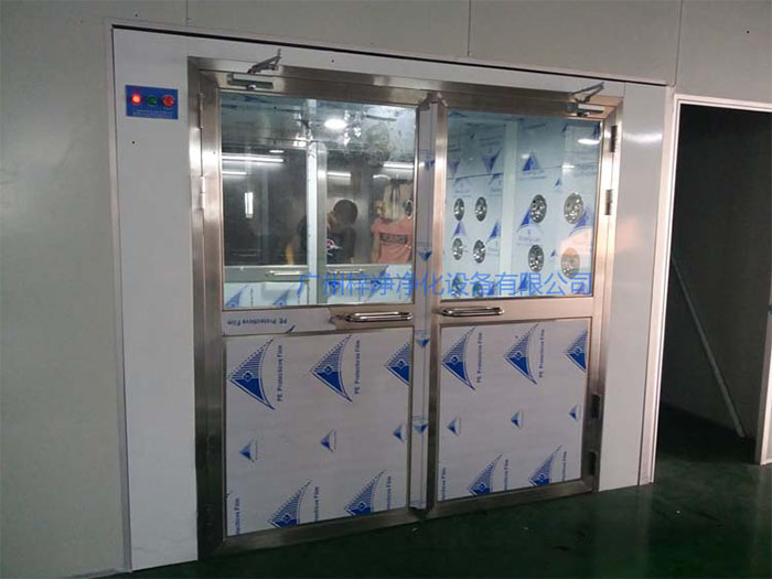 以上三種方案供用戶參考!雙開門貨淋室前門打開,后門緊鎖 防止潔凈室與非潔凈室空氣對流。普通貨淋室|雙開門貨淋室作用
