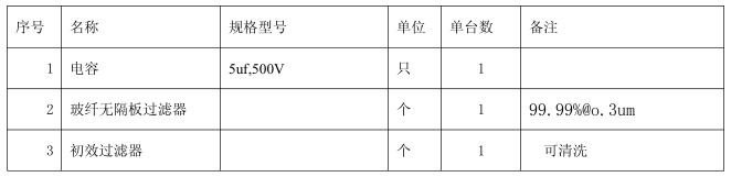 FFU定期維護項目包括馬達,風機,電氣部件等。QQ圖片20151203120008表 4 ?消耗性部件的更換期間 ( 我司建議 )