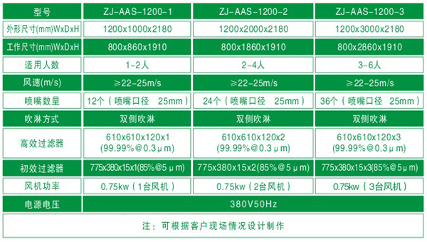 1.采用風機、高效過濾設備、噴嘴、回風系統的風淋裝置。